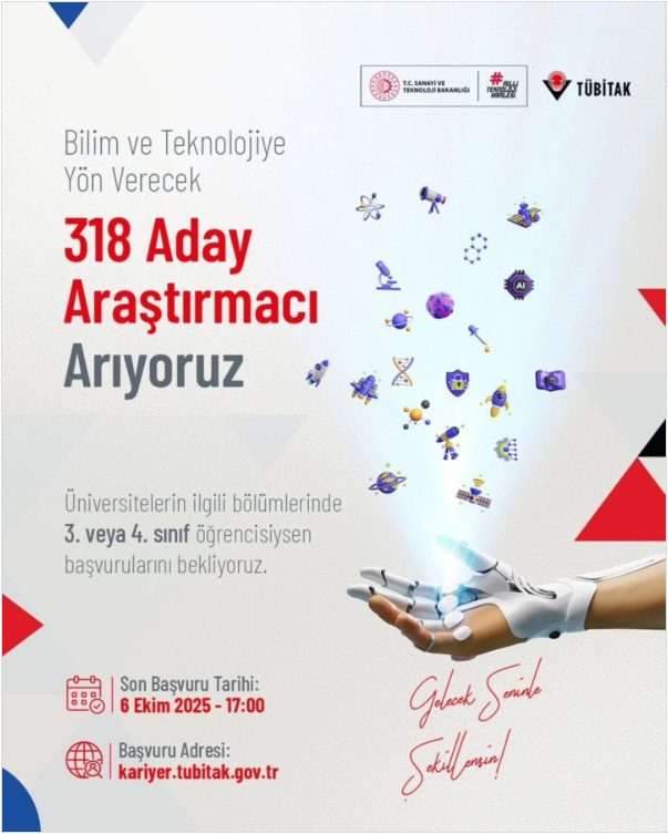 Başvuru ve detaylı bilgi için: kariyer.tubitak.gov.tr Son başvuru tarihi: 6 Ekim 2025 - 17.00