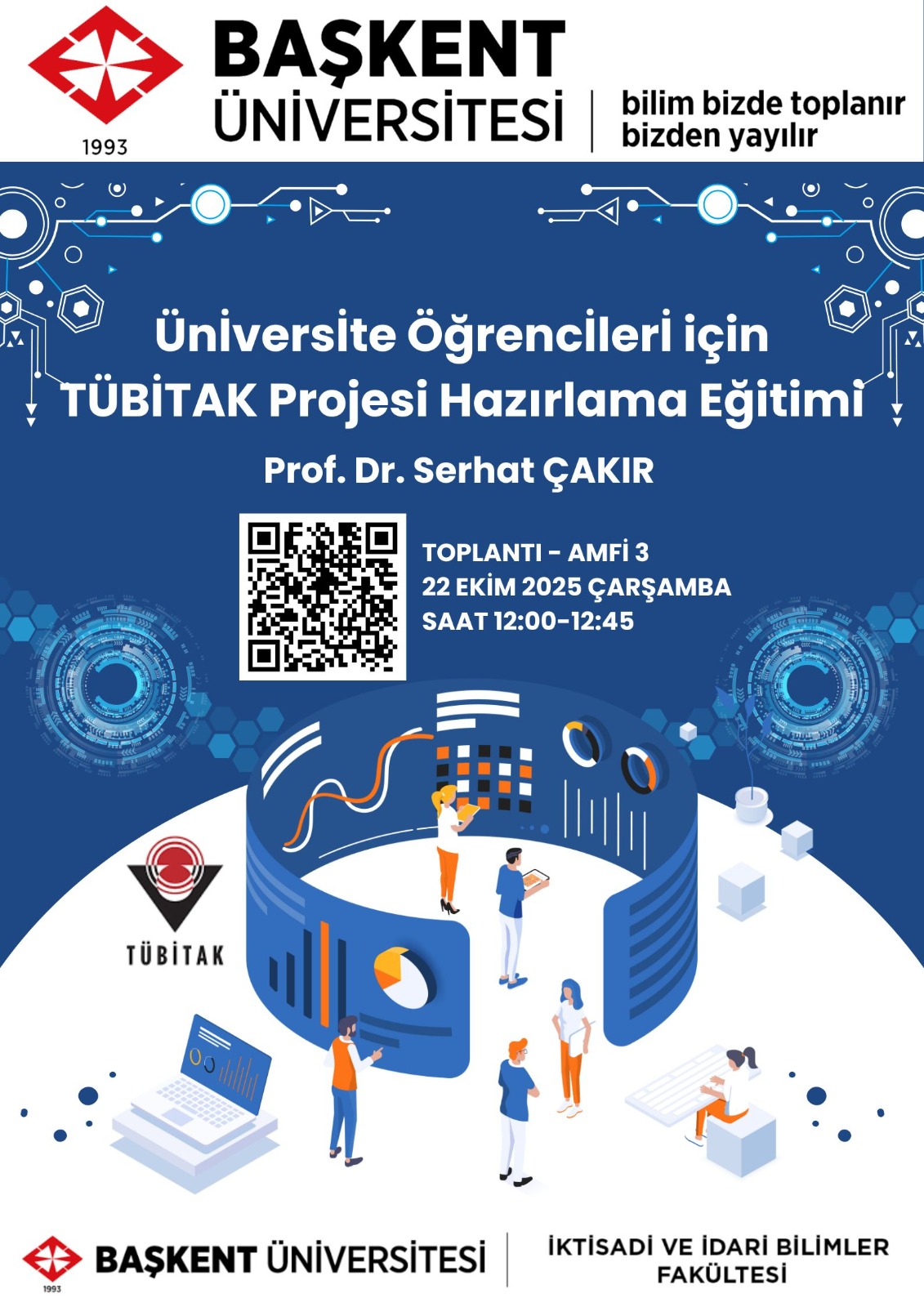 Teknoloji ve Bilgi Yönetimi Bölüm Başkanı Prof. Dr. Serhat Çakır hocamızın yürüttüğü 2025-2026 Güz Dönemi "Üniversite Öğrencileri İçin TÜBİTAK Projesi Hazırlama Eğitimi" tanıtım toplantısı gerçekleşmiştir.